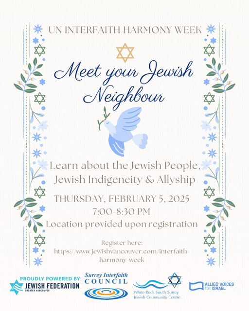 - Register: jewishvancouver.com/interfaith-harmony-week