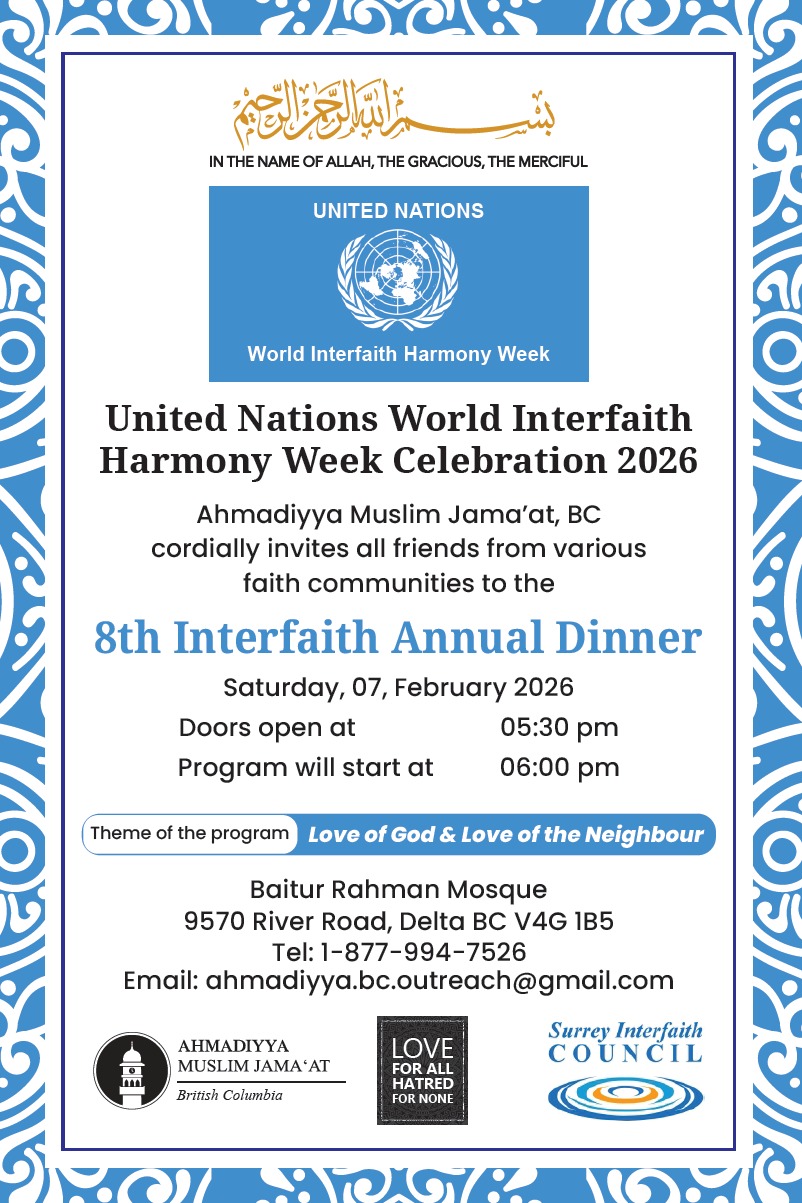 World Interfaith Harmony Week is an opportunity to connect with diverse communities, learn from one another, and celebrate shared values. Join us in supporting dialogue, compassion, and understanding in British Columbia and beyond.